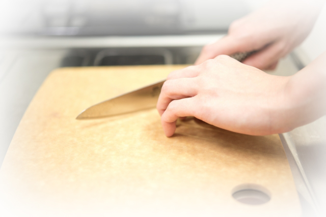 包丁の刃をまな板に擦りつけないでください。軽くまな板に刃があたる程度で食材を切ると長切れします。